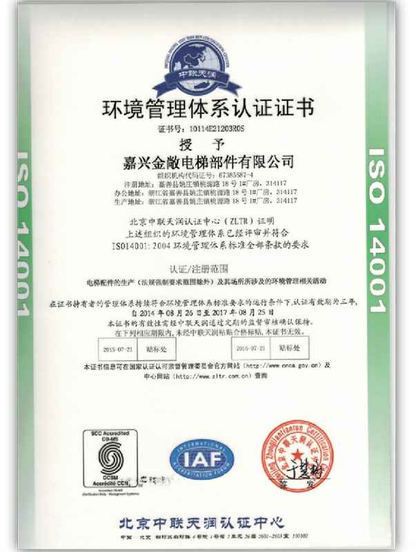 本公司已通过了ISO9001:2008,ISO14001:2004标准质量管理体系认证。